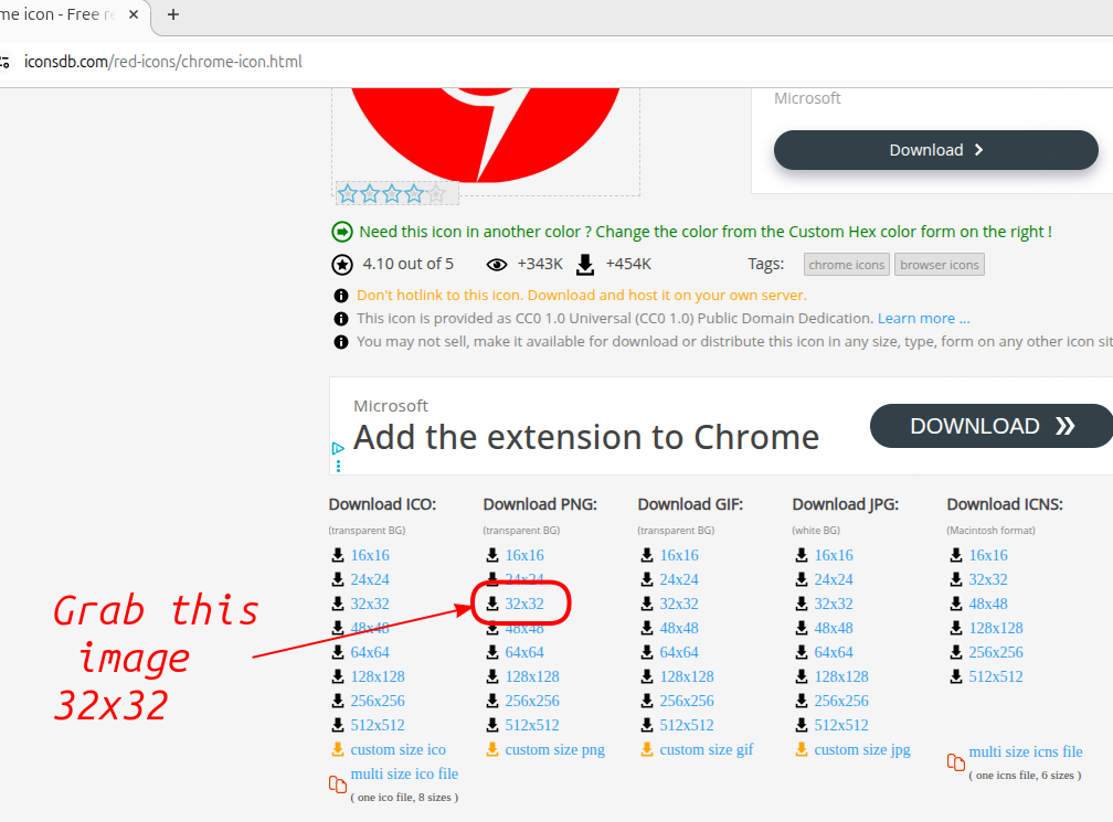 Download a png file of the new icon image and save to your Pictures folder. The file size shouldbe 32px x 32px.